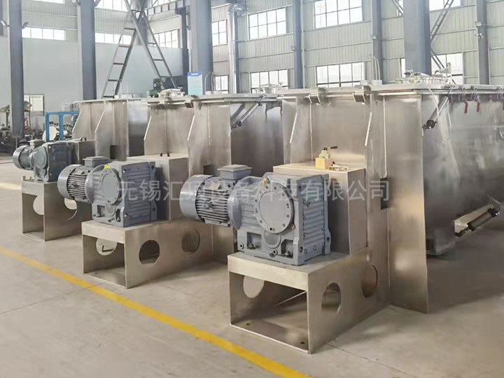 6、裝載系數大、設備占地面積小;混合粘性或具有凝聚性的物料時,清洗困難。