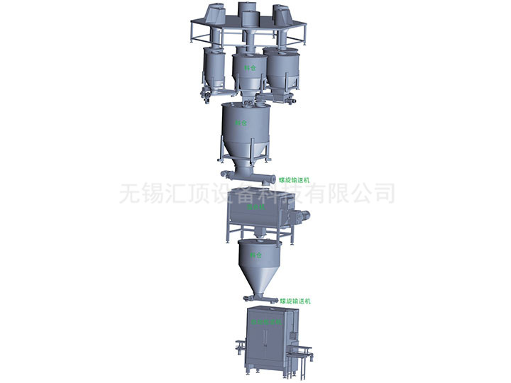 該配料系統(tǒng)主要用于多種物料的配料包裝輸送生產(chǎn)環(huán)節(jié)。該系統(tǒng)可包括原料上料輸送、原料儲存、選擇配方、自動配料、物料輸送、混合拌勻、裝袋縫包全過程。根據(jù)用戶的場地布局和具體要求,可進(jìn)行差異化設(shè)計,滿足客戶對性價比的要求。