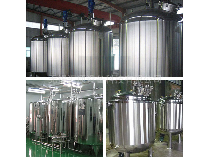 不銹鋼儲罐設備分缸體、缸蓋、進料口、出料口,由不銹耐酸鋼304或316制成,罐體采用立式或臥式單層或雙層結構,并根據用戶要求充填保溫材料,按GMP技術條件進行,缸體內拋光,外部采用鏡面板或磨砂板保溫。頂部開設進水口、回流口、消毒口、清洗口、人孔并安裝空氣呼吸器,且可與管道連接,便于連續進各種配料,缸底為錐度,出料口便于放料。